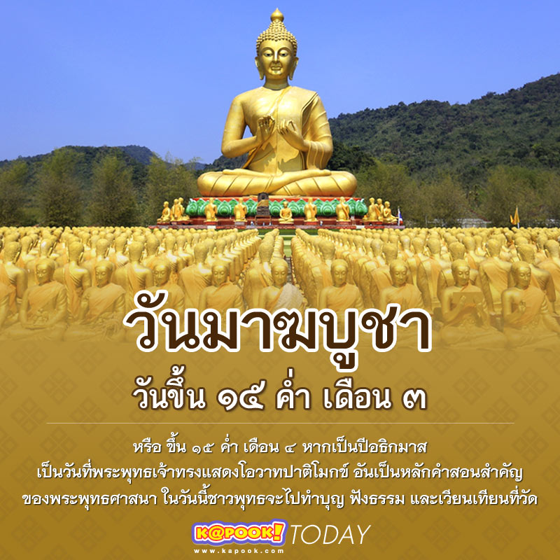 ว นมาฆบ ชา ป พ ศ 2564 ตรงก บว นศ กร ท 26 ก มภาพ นธ ว นเพ ญ ข น 15 ค ำ เด อน 3 ว นสำค ญทางพระพ ทธศาสนา ว นท พระพ ทธเจ าแสดงโอวาทปาต โมกข แก พระภ กษ จำนวน 1 250 ร ป Thamnamlok