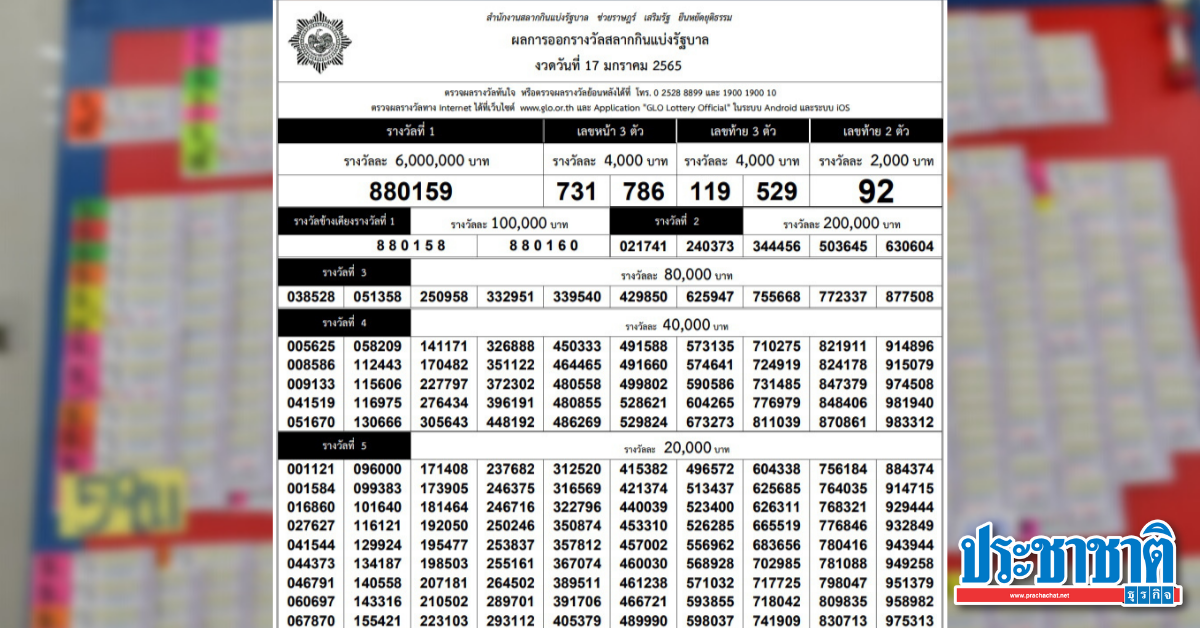 ผลสลากก นแบ งร ฐบาล งวด 17 มกราคม 2565 ตรวจหวย ลอตเตอร หวย17 1 65