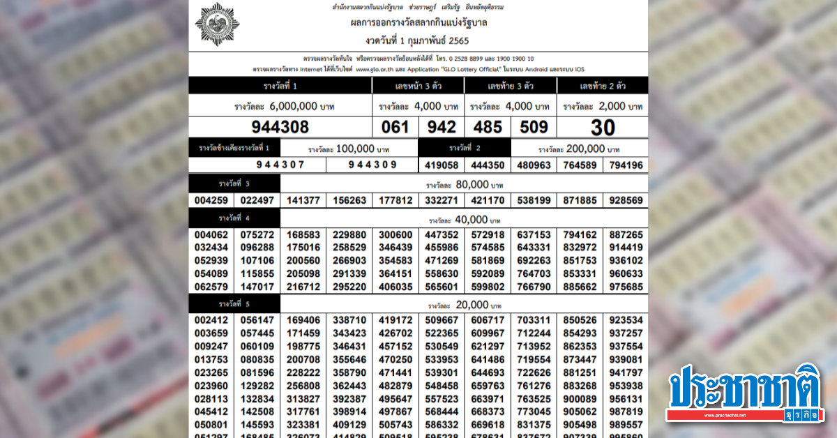 ผลสลากก นแบ งร ฐบาล งวด 1 ก มภาพ นธ 2565 ตรวจหวย ลอตเตอร หวย1 2 65